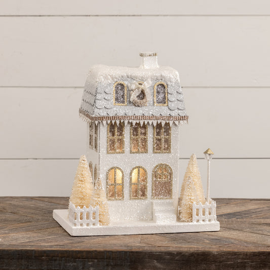 13.5" SNOWY LIGHTED WOOD HOUSE