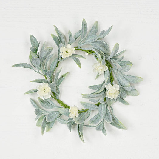 14in(6.5)Wreath-Lamb Ears with Cream Ranunculus