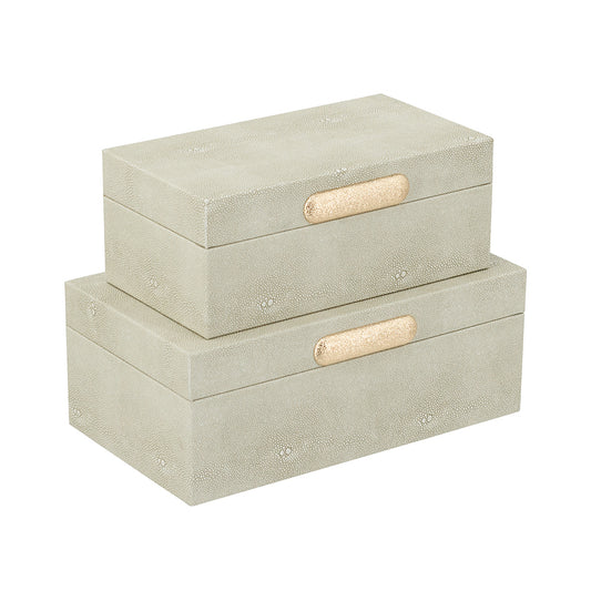 Decorative Wooden Storage Boxes with Gray Faux Leather Finish and Gold Handle Set of 2