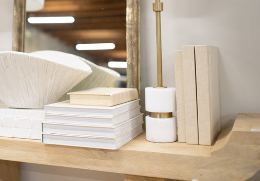 Large Decorative Book, White Striated Binding 12.25"x 10.25"