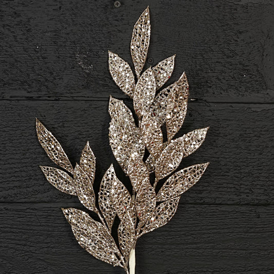 32258-26in Glittered mesh bay leaves Branch-CHAM