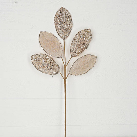 32250-25in Spray-Beaded Metallic Magnolia Leaves x5-CHAM