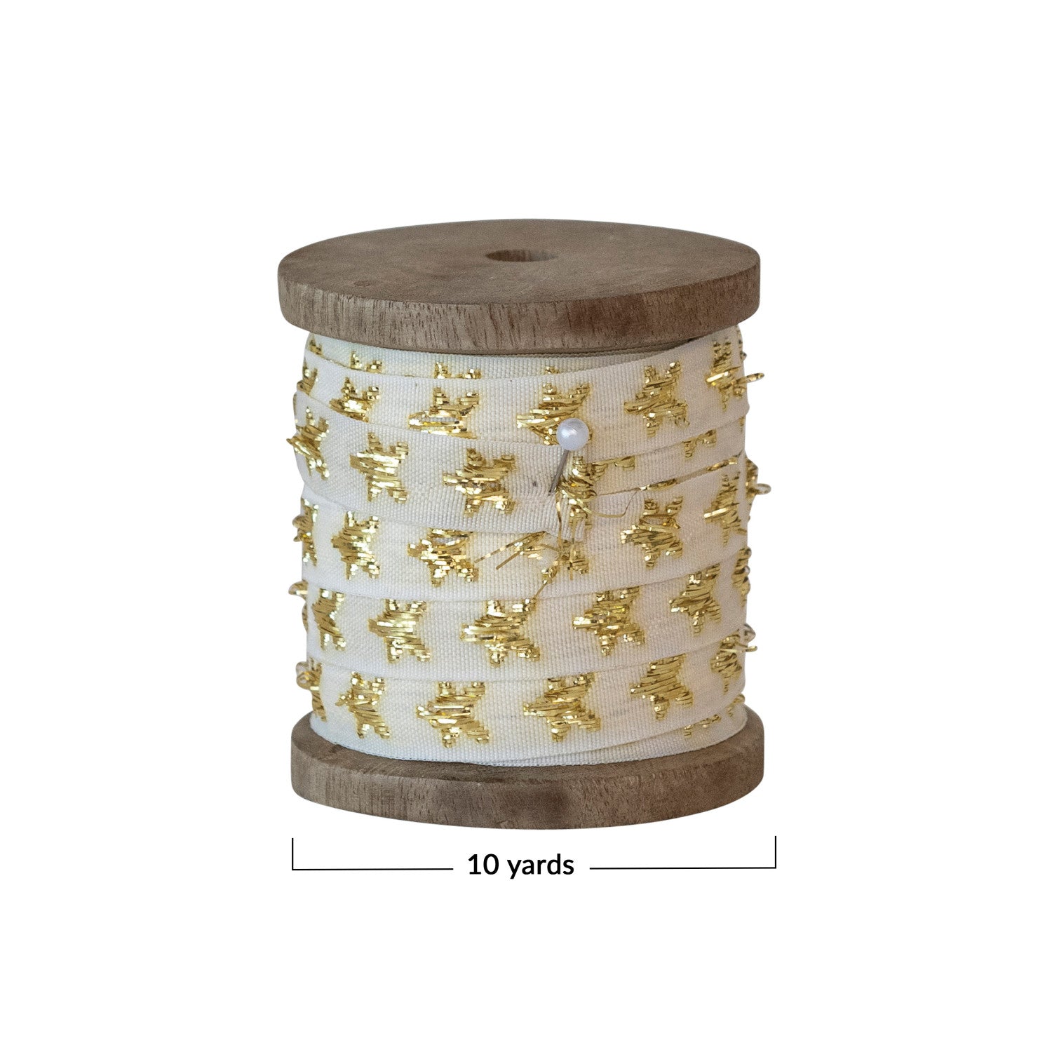 This 10 yard fabric ribbon on wood is perfect for all your crafting needs. The durable wood spool ensures easy storage, while the high-quality fabric ribbon adds a touch of elegance to any project. Use it for gift wrapping, home decor, or any creative endeavor.