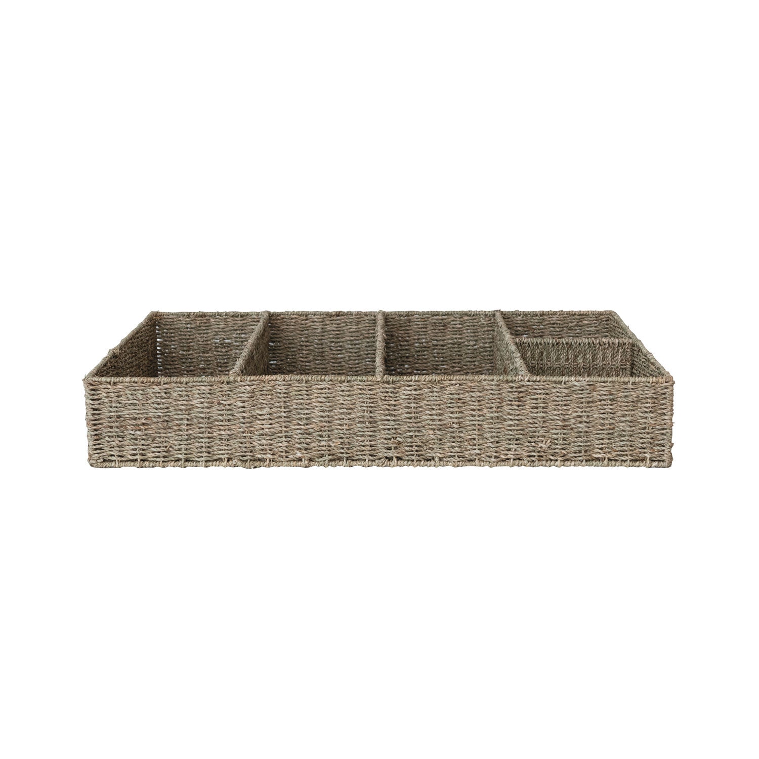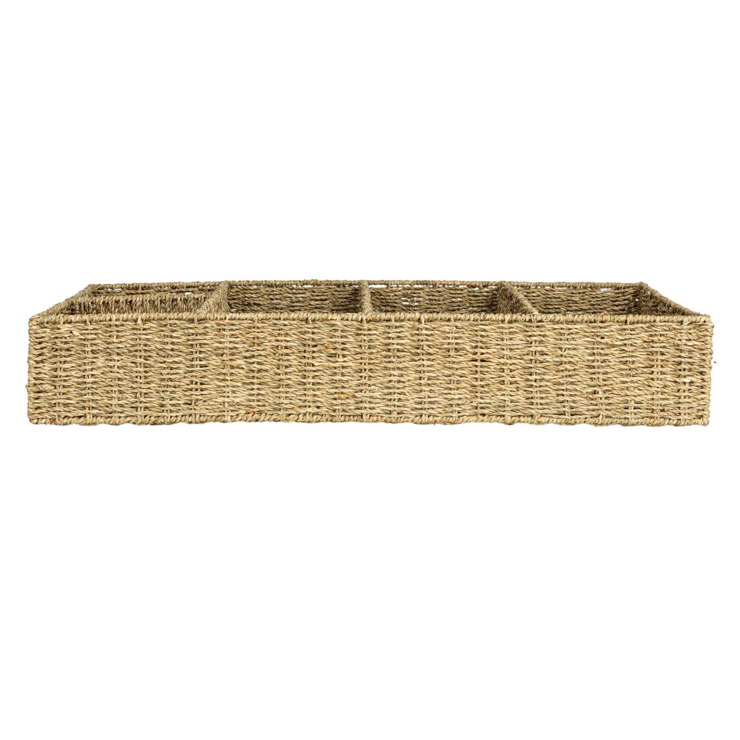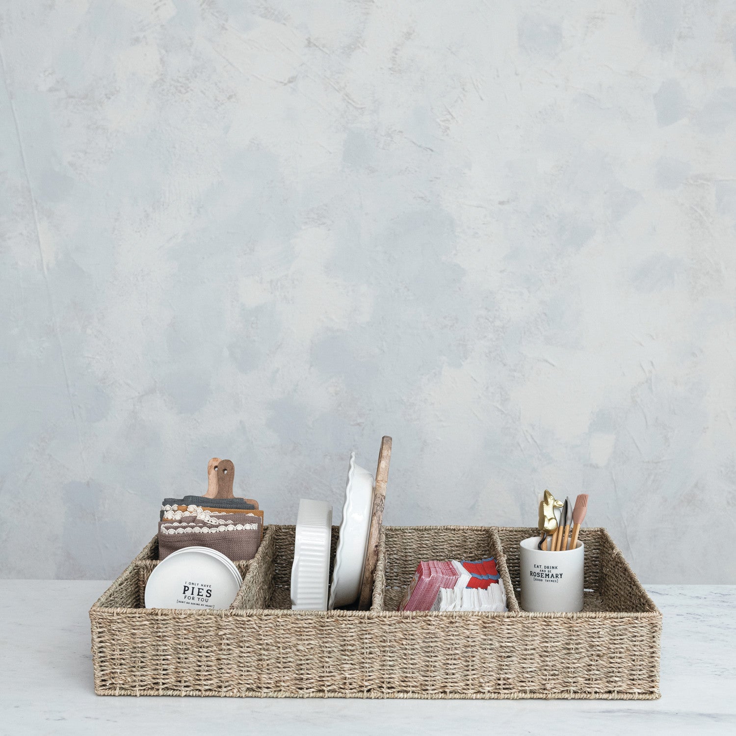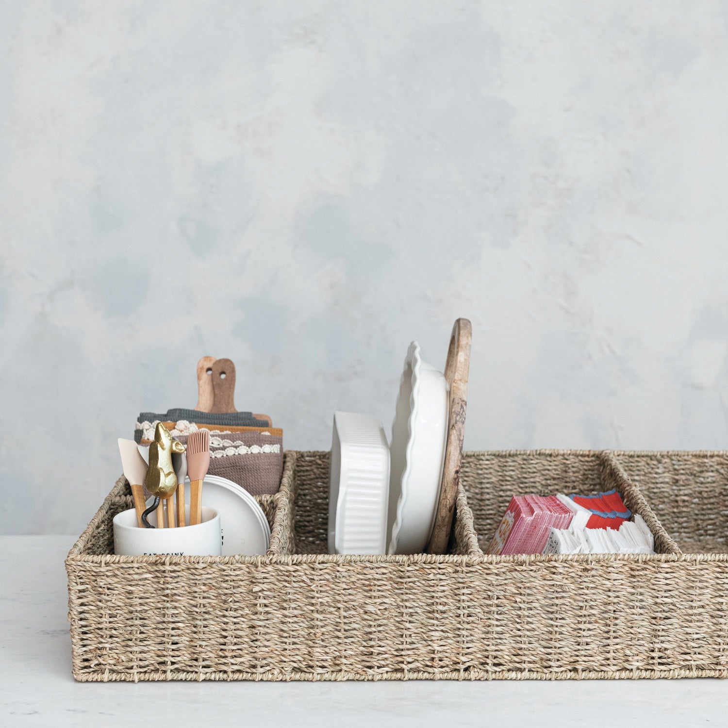 Expertly crafted with a blend of seagrass and metal, this 31-3/4"L tray is both stylish and durable. The perfect size for serving guests or displaying decor, it adds a touch of natural elegance to any space. Experience the benefits of a functional and visually appealing home accessory.