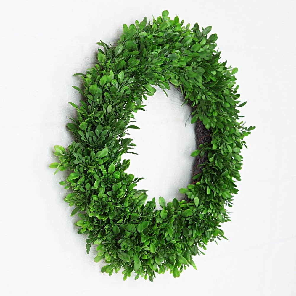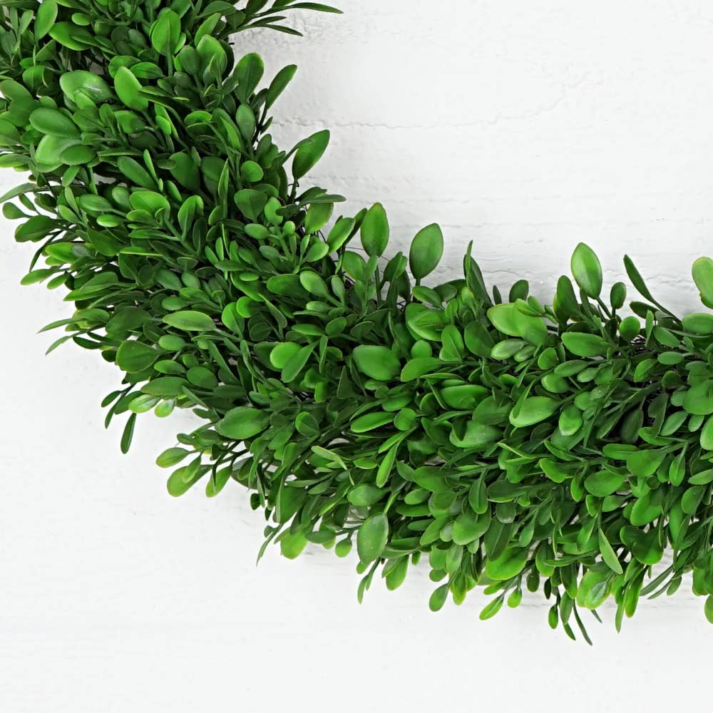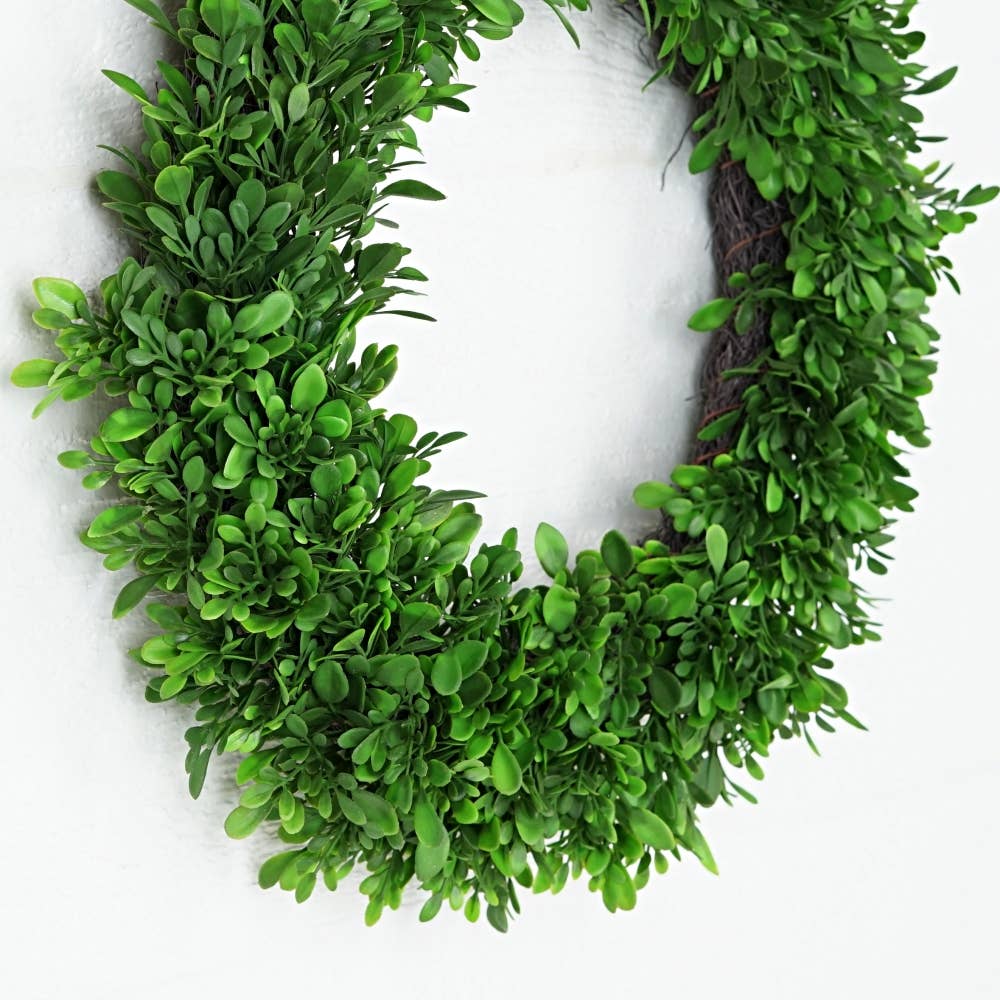 (NEW 2024 ITEM!) 18-inch (10) Twig Wreath-Evergreen Boxwood. Perfect for everyday design and additions to your holiday look! Work beautifully on a wall or as a table center piece.
