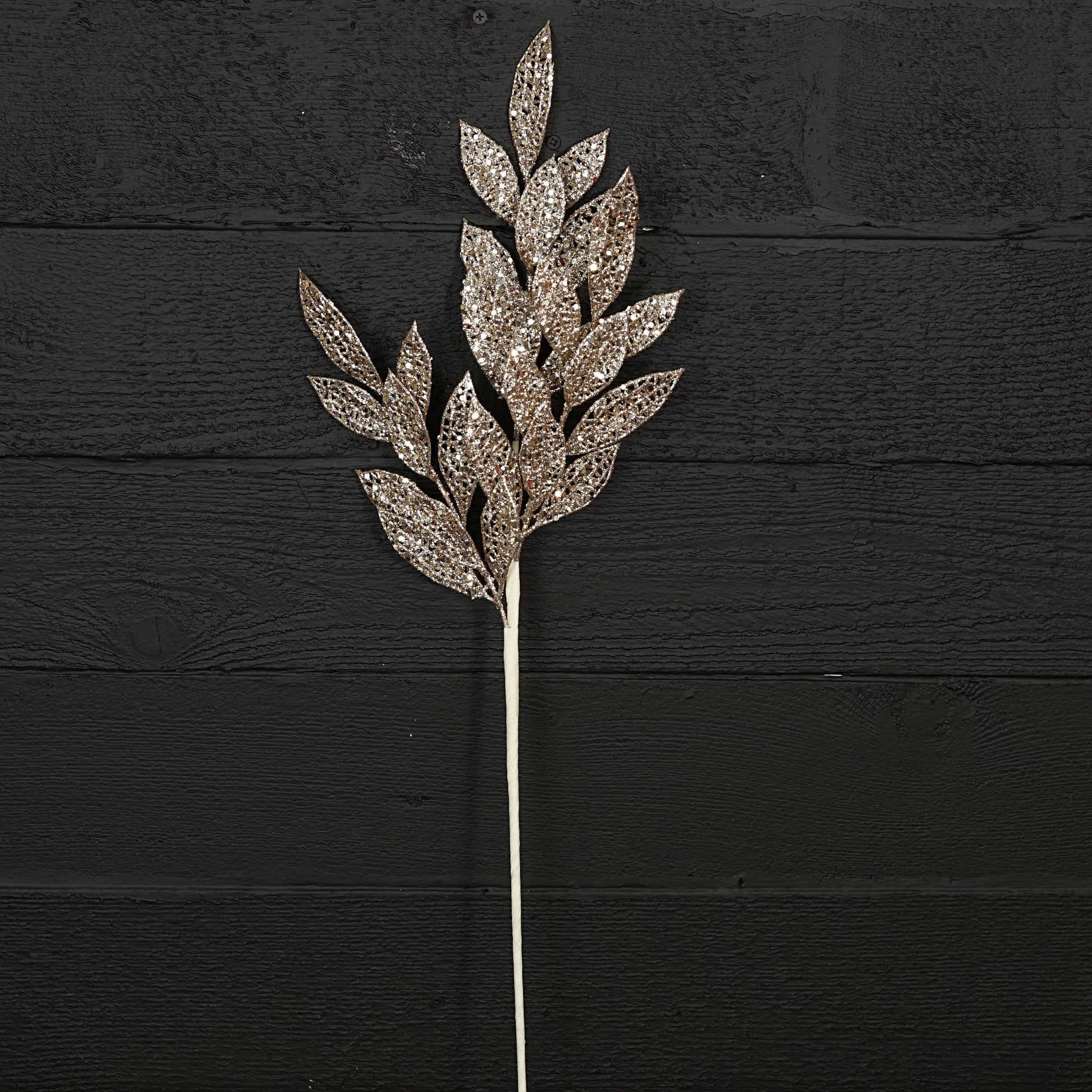 (NEW 2024 ITEM!) 'Tis the season, so be sure to add our 26-inch Glittered mesh bay leaves Branch-Champagne to your holiday decorations!
