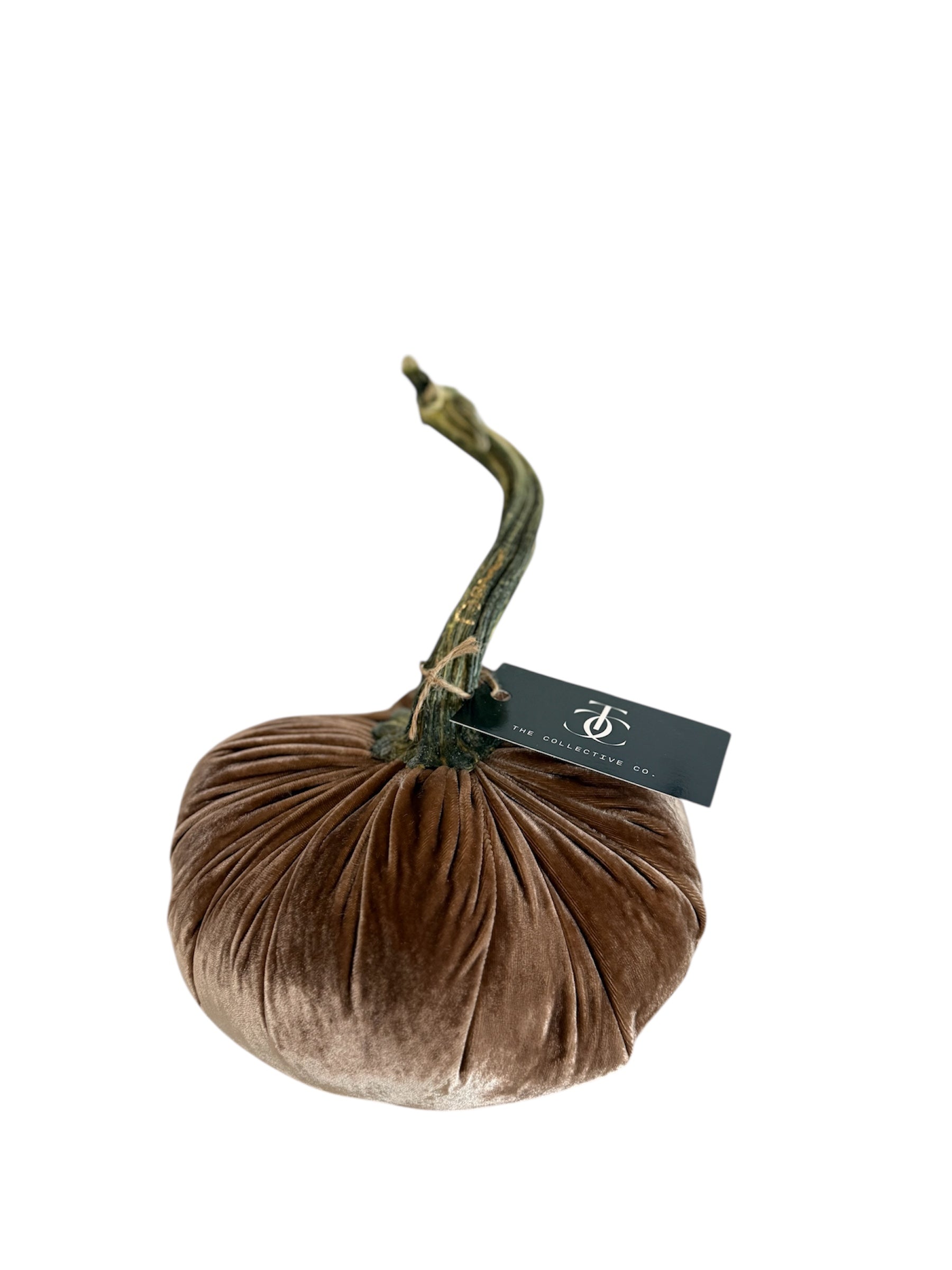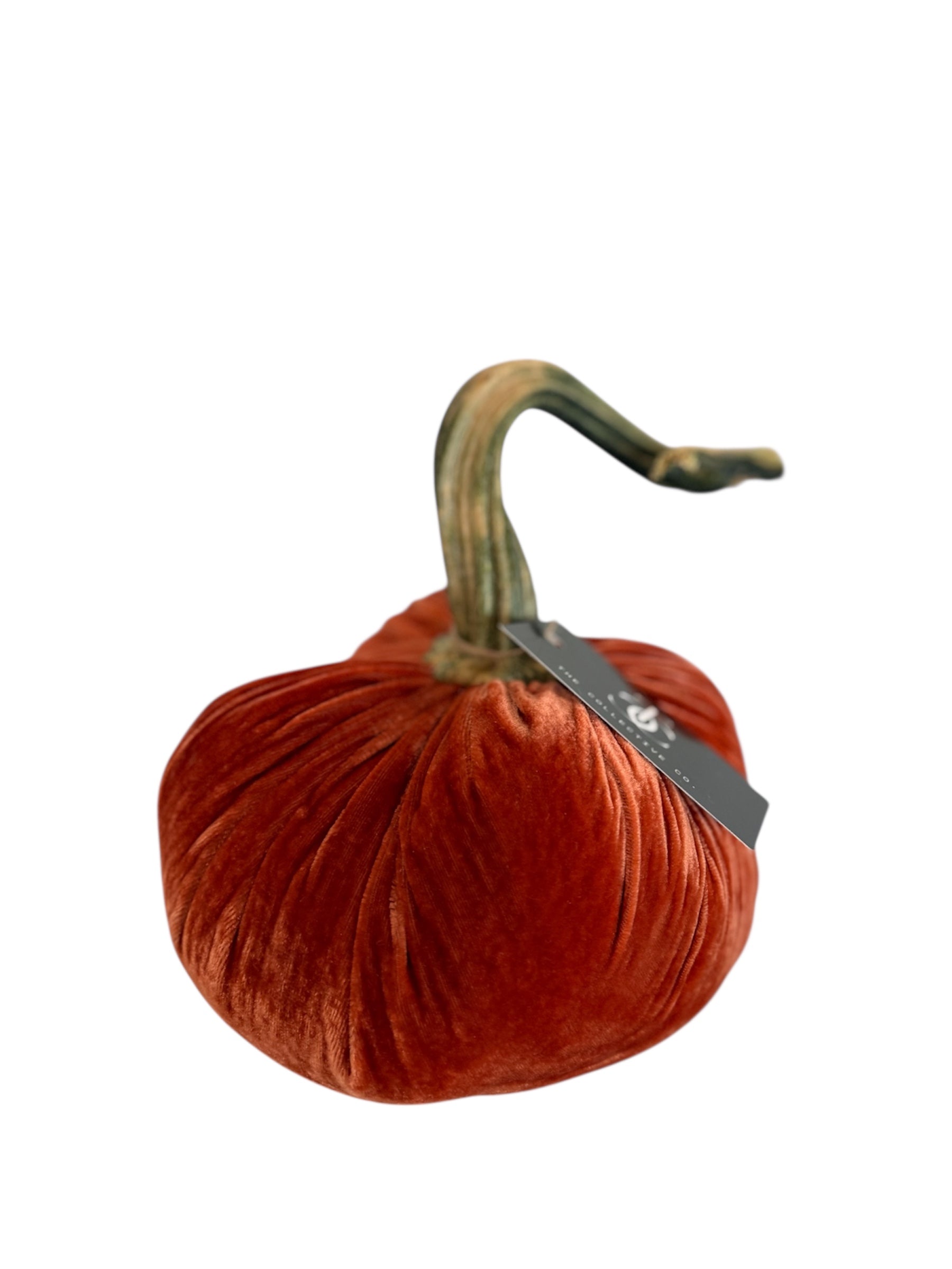 These velvet pumpkins are handmade in Oregon by one of our trained artisans. Each piece is hand cut and sewn to order and finished with a natural stem. Our stems are specially curated varieties to ensure beautiful shapes and quality.