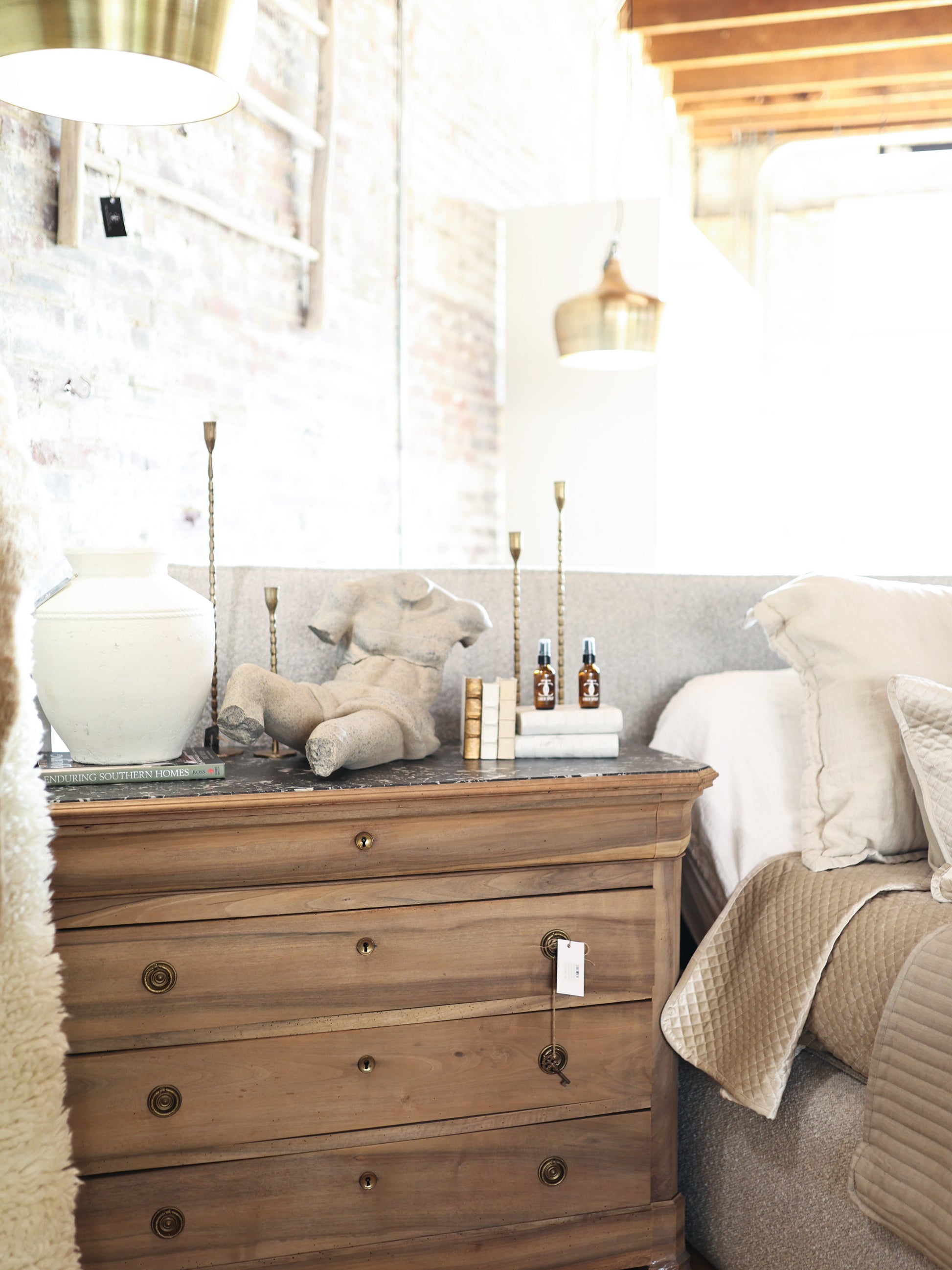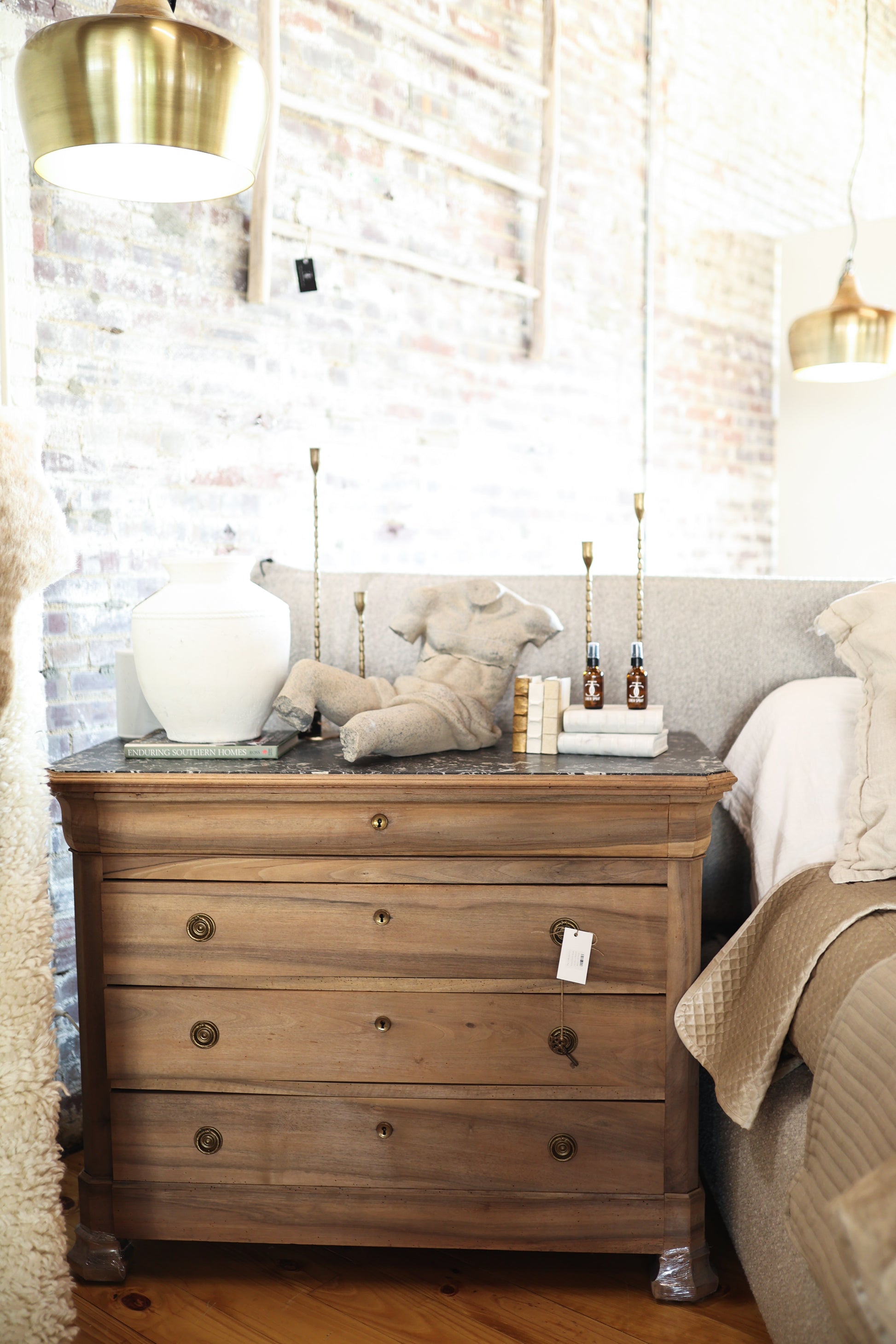 Antique French Marple Top Chest in Bleached Walnut