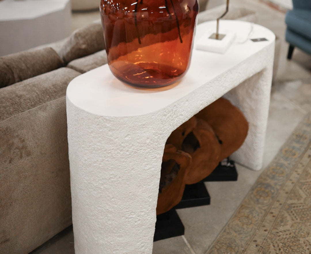 This White Concrete Console Table is perfect for adding a touch of modern elegance to any room. Made from high-quality white concrete, this console table is durable and sturdy, able to withstand daily use. Its minimalist design and clean lines make it a versatile piece that can complement any decor style. Perfect for displaying decorative items or using as a functional surface, this console table will be a stylish addition to your home.