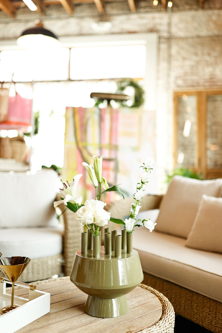 Elevate your floral arrangements with this stunning enameled metal vase that combines functionality with timeless style. Measuring 10-3/4" in diameter and height, its olive-toned finish adds warmth and sophistication to any space. The ingenious removable frog lid features ten openings, giving you complete creative control over your flower placements—whether you're crafting a lush garden display or an artistic mixed arrangement. Built on sturdy feet for reliable stability, this durable piece transforms ordinary blooms into extraordinary focal points. Invest in a vase that works as hard as your imagination.