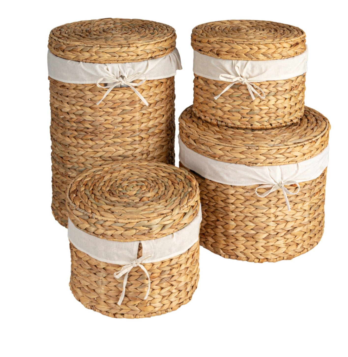 (Large) Water Hyacinth Basket w/ Lid, Handles & Cotton Lining