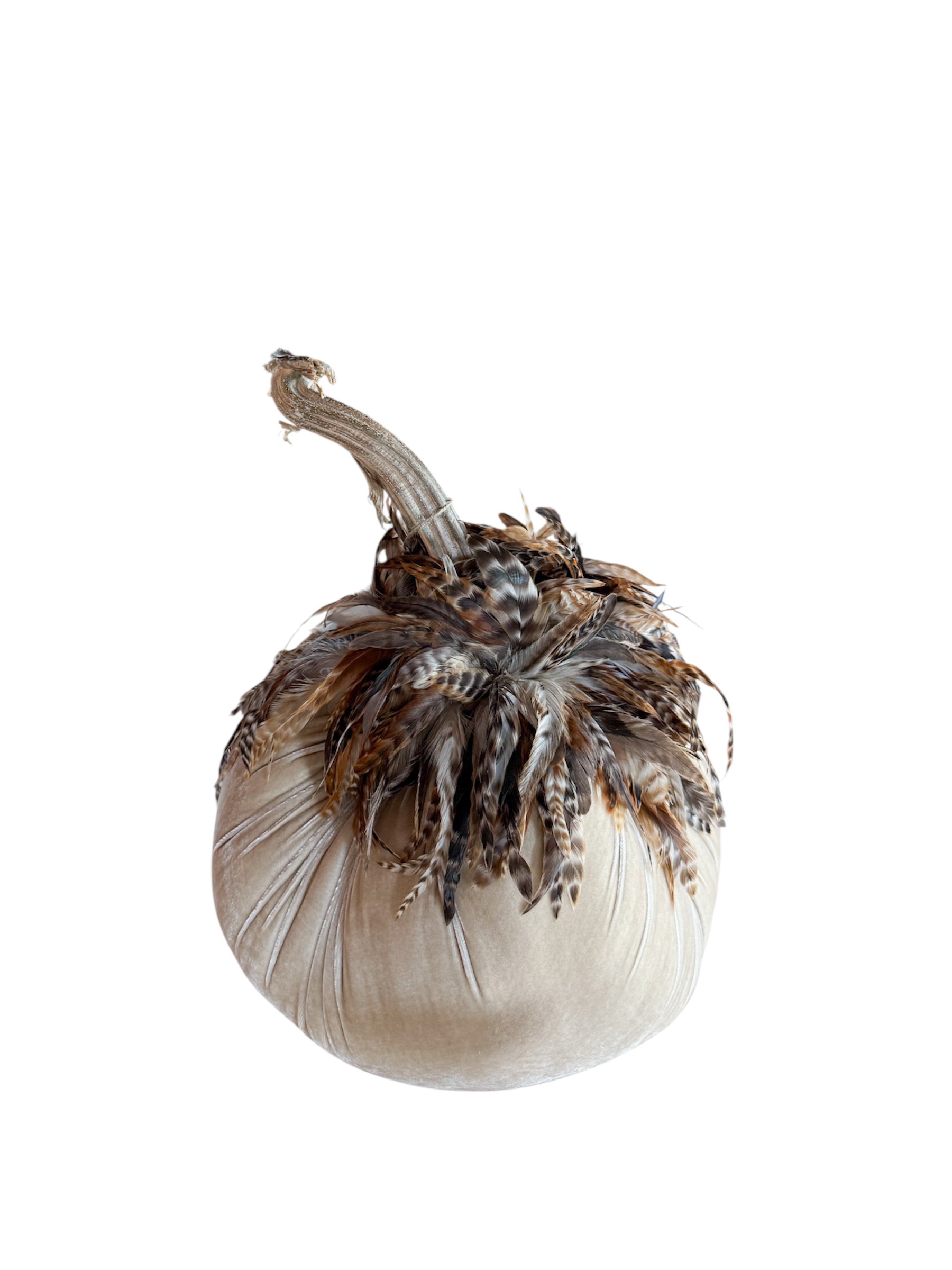 These velvet pumpkins are handmade in Oregon by one of our trained artisans. Each piece is hand cut and sewn to order and finished with a natural stem. Our stems are specially curated varieties to ensure beautiful shapes and quality.