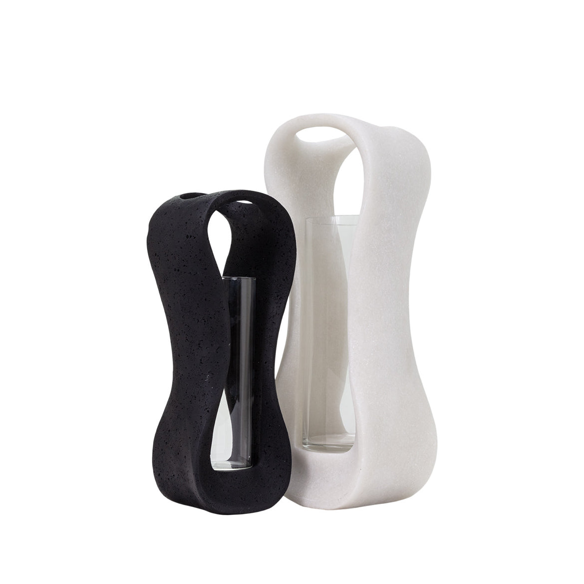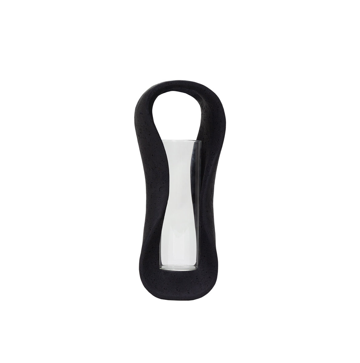 The Lestro Black Hurricane is an elegantly designed candleholder that combines modern aesthetics with functional sophistication. Standing at 13 inches high with a width of 3.5 inches and depth of 4.5 inches, this polyresin hurricane lamp features a distinctive U-shaped silhouette in a sleek matte black finish. The curved design creates a protective embrace around the candle while adding architectural interest to any space. Its clean lines and contemporary form make it versatile enough to complement both modern and traditional decor schemes. Perfect as a standalone accent piece or paired with a matching holder for dramatic impact, this hurricane can be styled on mantels, dining tables, or as part of a curated centerpiece arrangement. The polyresin construction ensures durability while maintaining a refined appearance, and the classic black colorway allows it to seamlessly integrate into any color palette.