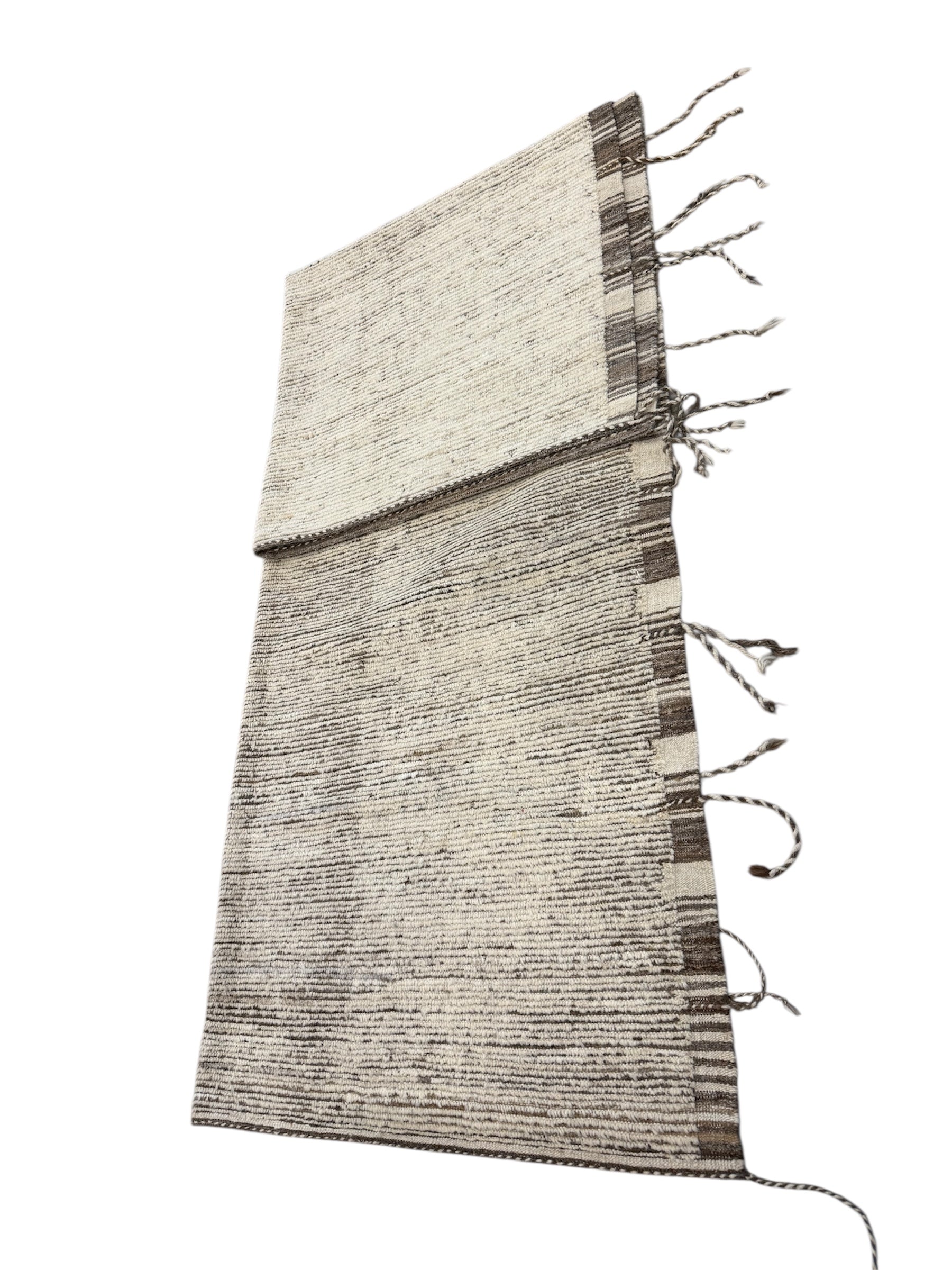 Modern Neutral/Stripe Moroccan Turkish Rug with Tassels