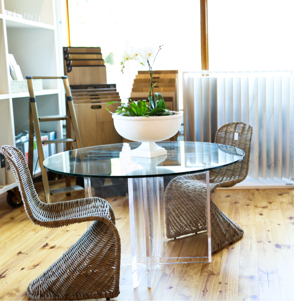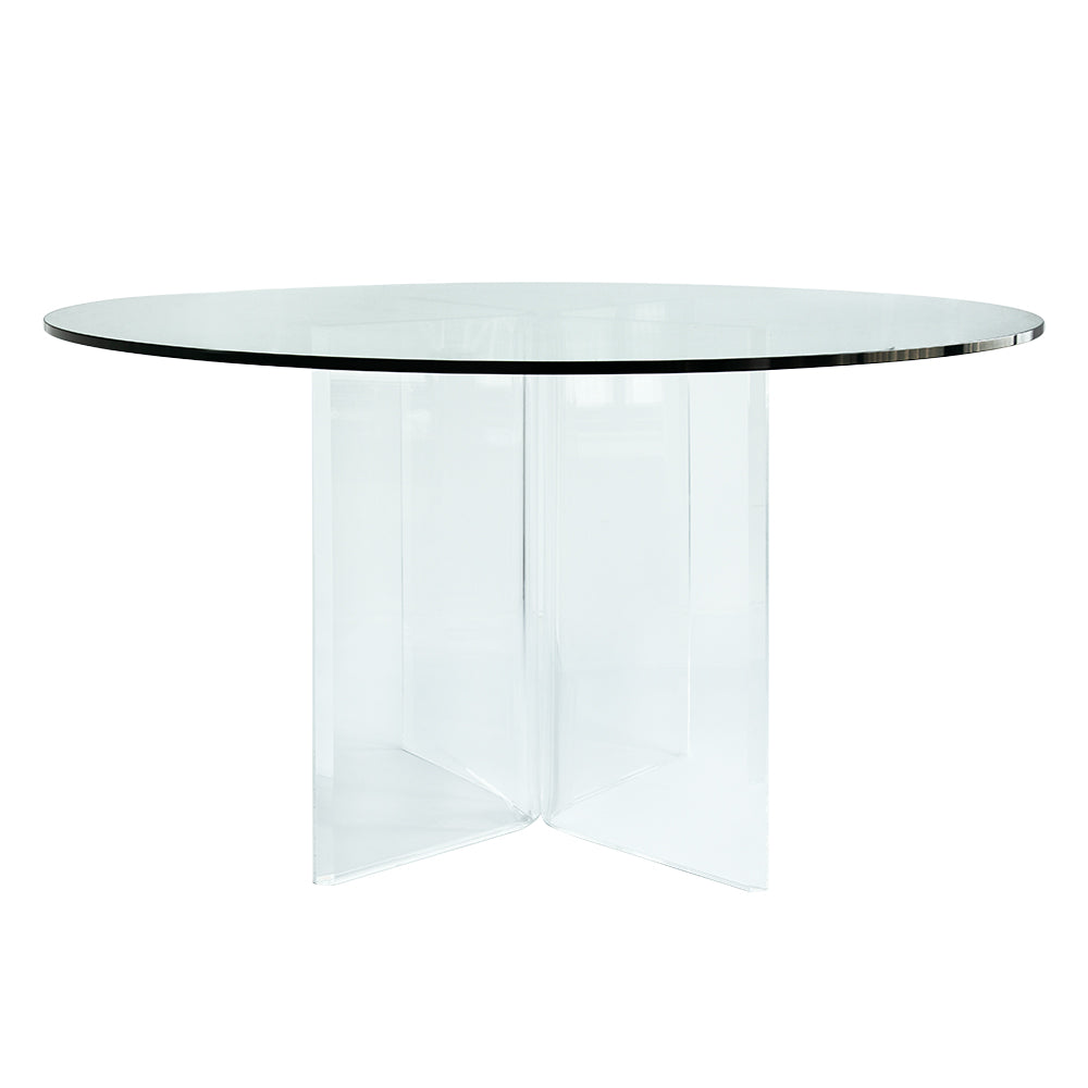 Ultra modern and clearly a stylish statement, the Lucent round dining table is perfect for a contemporary home. Crafted of crystal clear acrylic and topped with a round glass top, this table is a sophisticated anchor for your dining room.