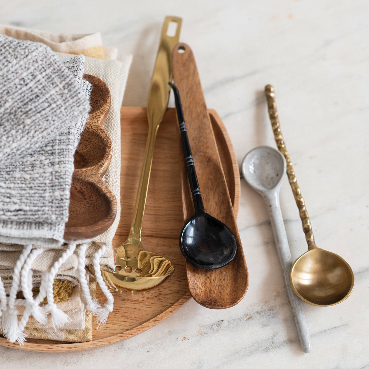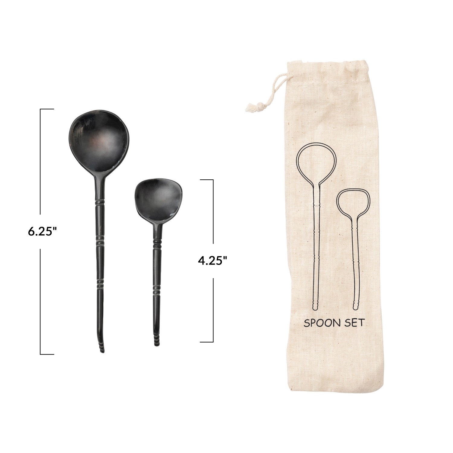 Crafted from natural horn, this set of 2 spoons adds an artisanal touch to any kitchen. The unique texture and color variations in each spoon make them one-of-a-kind.