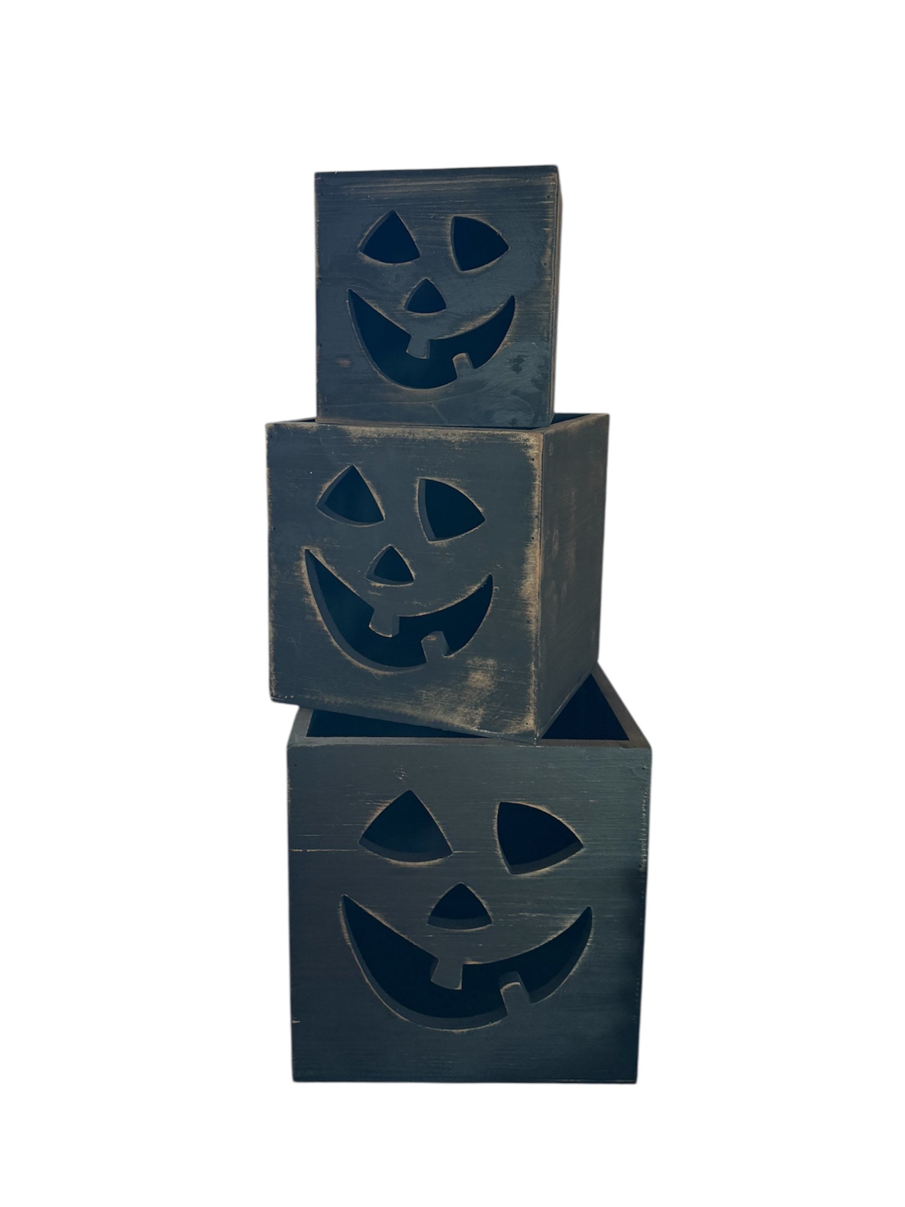 (Set of 3) Wooden Jack-O-Lantern Boxes