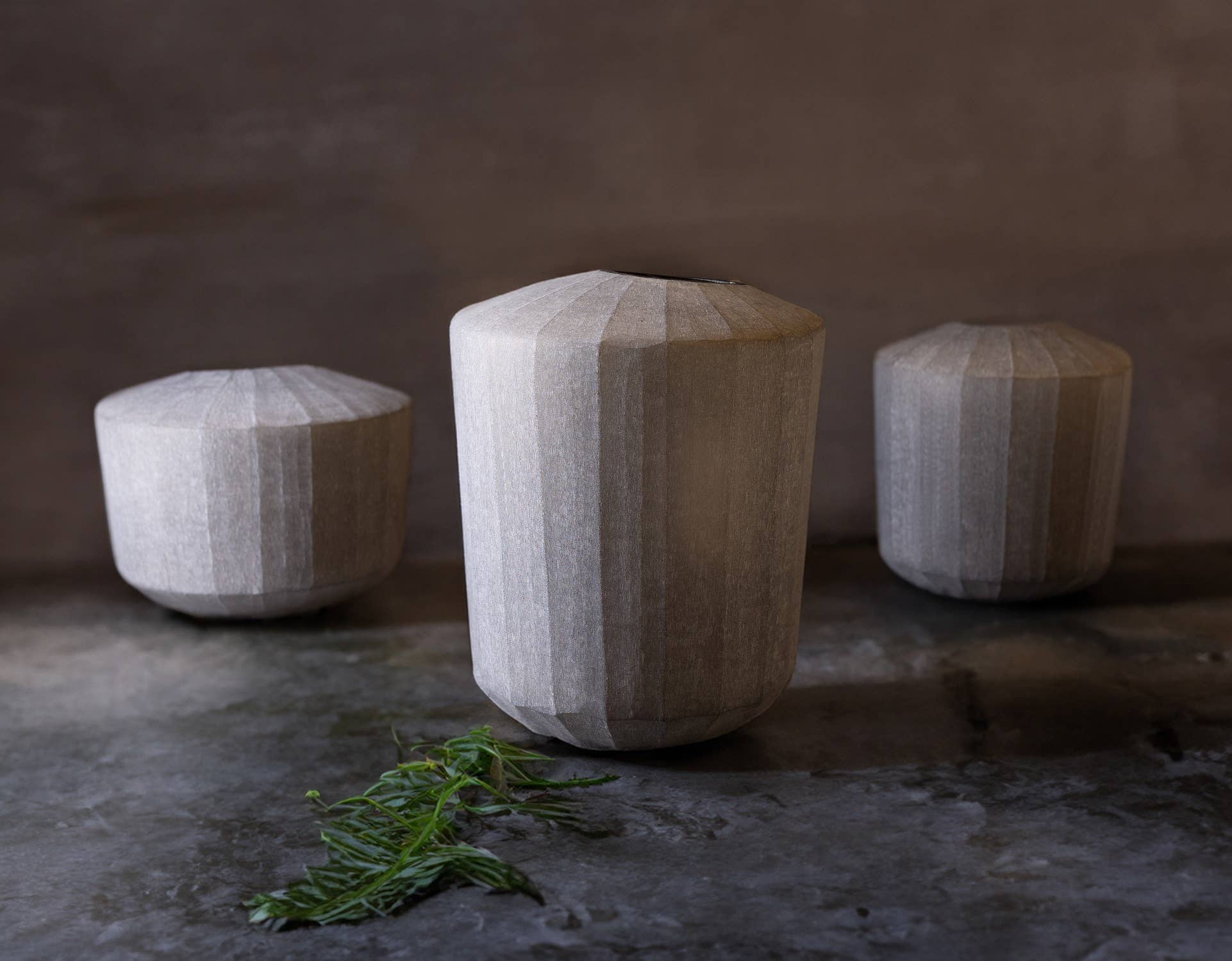 Vase Long Smoke Vertical Flat Cut Stone Finish Dia 9"